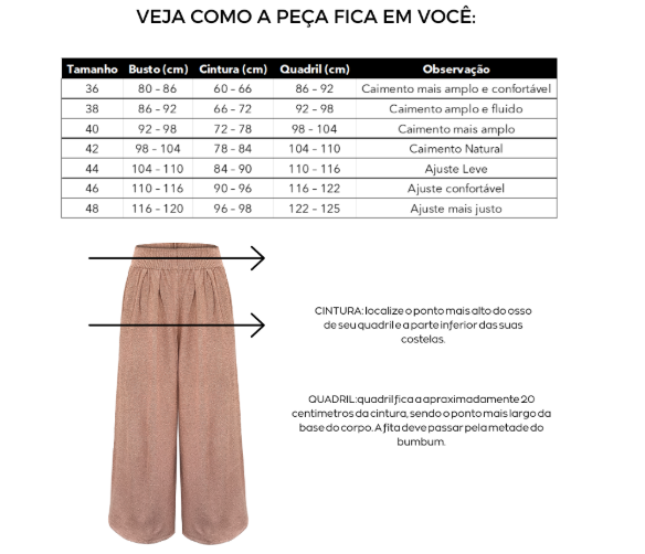 Calça produzida em fio modal com trama lisa, leve e macio ao toque. A modelagem é ampla estilo Pantacourt ideal para looks confortáveis. Pode ser usada com look despojado, devido a leveza do tecido, ao look mais elegante. Peça versátil, ideal para diversos locais.