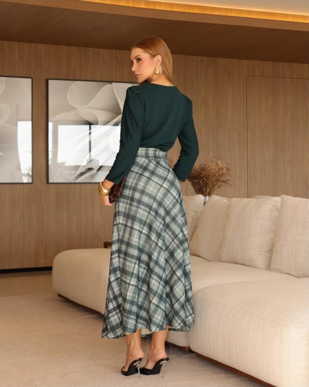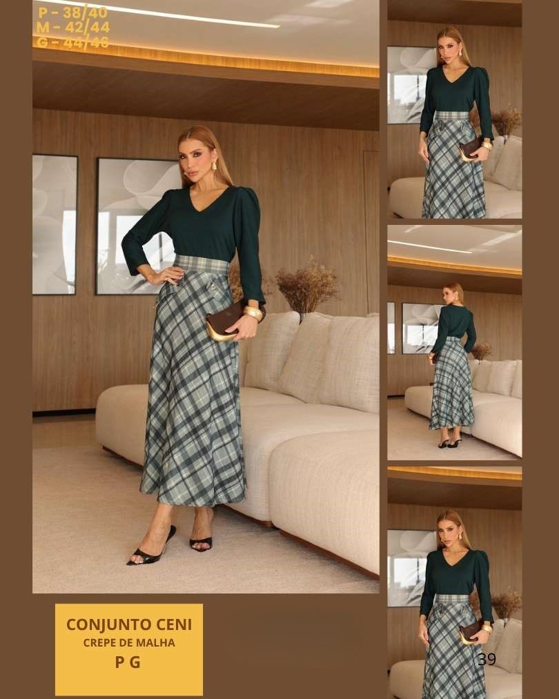 DSCRIÇÃO BLUSA + SAIA Confeccionado em Crepe de malha. -Confortável e respirável; -Não amassa com facilidade; -Valoriza o corpo com movimento natural; -Ideal para quem busca sofisticação com leveza.