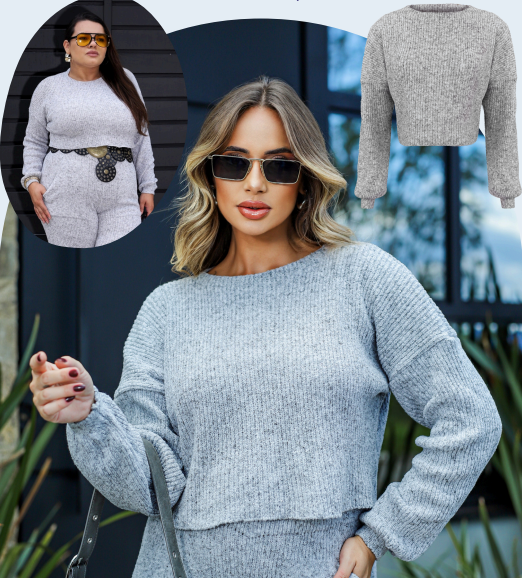 Blusa produzida em mousse com trama lisa. A modelagem é ampla e cropped.