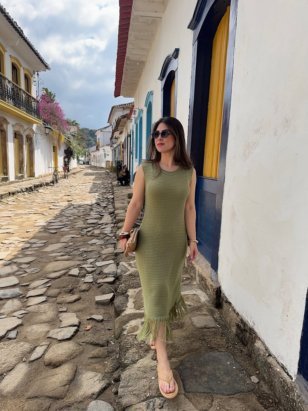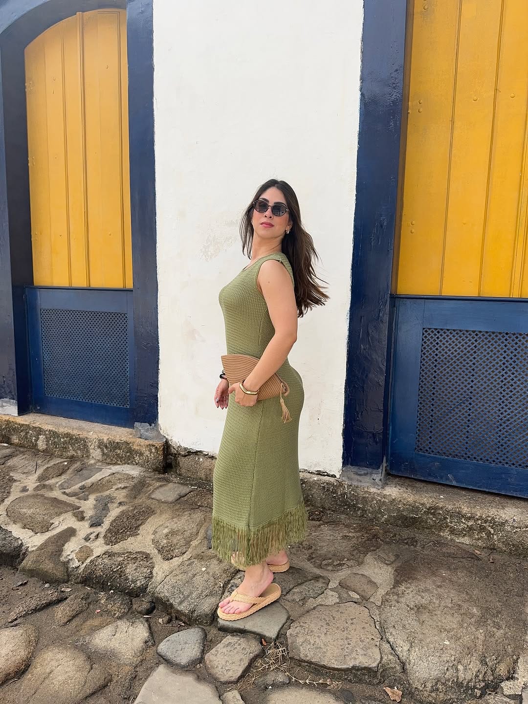 Vestido produzido em fio linha com trama texturizado. A modelagem é ampla e confortável. Leve e Fluido, ideal para praia e piscina, devido a praticidade da peça.